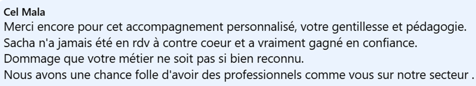 Je suis convaincue que votre travail a eu un impact significatif sur sa réussite. Je n'hésiterai pas à vous recommander à d'autres parents qui souhaitent offrir à leur enfant une formation de qualité. Encore merci pour tout.